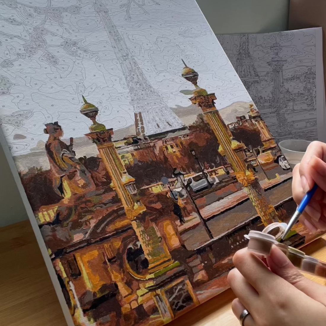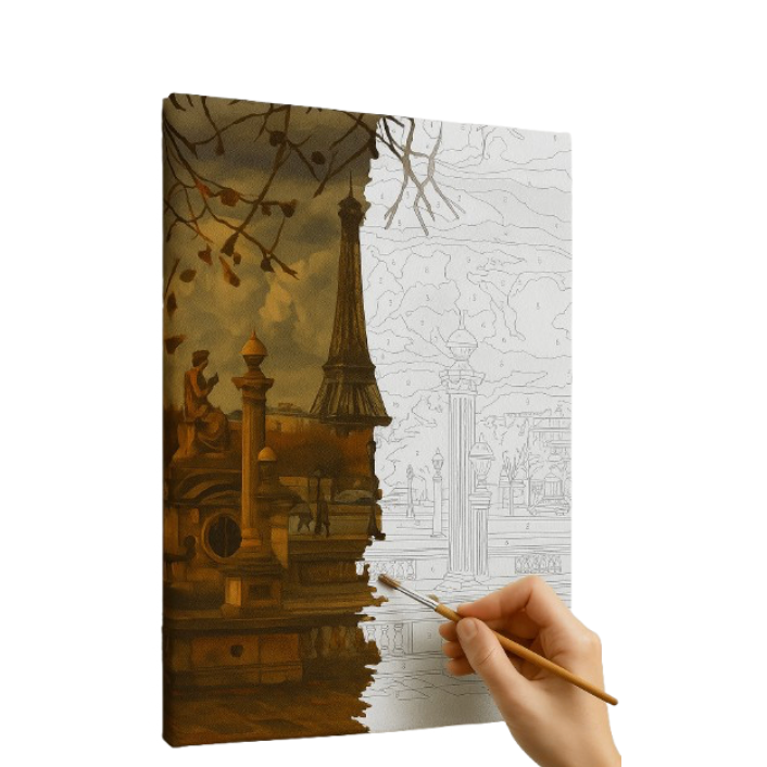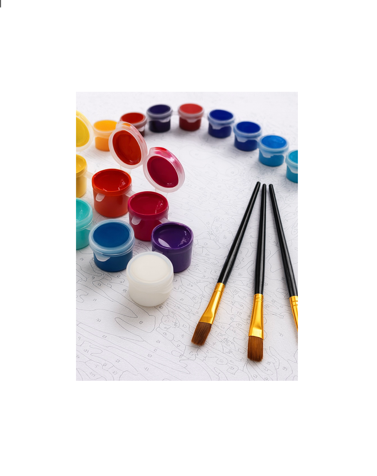 pinceaux de précision, peinture acrylique hautement pigmentée et toile numérotée de qualité supérieure.